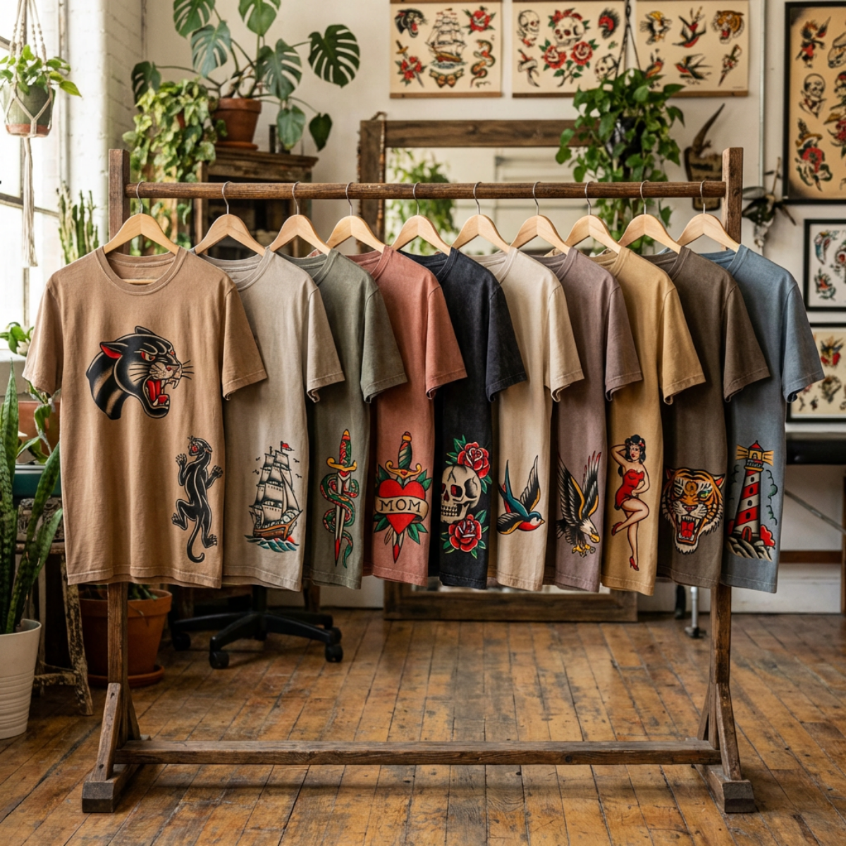 CLASSIC TATTOO IMAGERY ON PREMIUM HEAVYWEIGHT COTTON